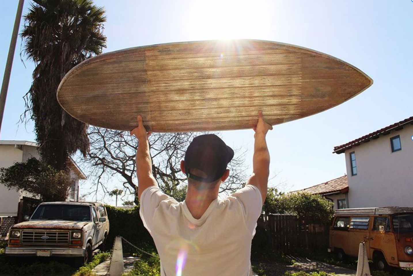 Son film sur le sujet: Trash Surf and Gold a même gagné un prix Surf au Film Festival à Anglet en 2018. L'idée c'est « de transformer vos poubelles de carton en planches de surf en or ».